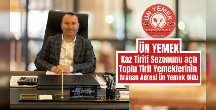 Kavak'ta faaliyet gösteren Ün Yemek Firması'nın Yöneticisi Mustafa Öksüzoğlu, Tirit sezonunun yöreye hayırlı olmasını dileyerek, toplu Tirit davetlerine hazır olduklarını belirtti. Öksüzoğlu, "Tecrübeli Kaz Tiriti aşçılarımızla emrinizdeyiz" diyerek, etkin ve yetkin bir kadroyla hizmet verdiklerini vurguladı.