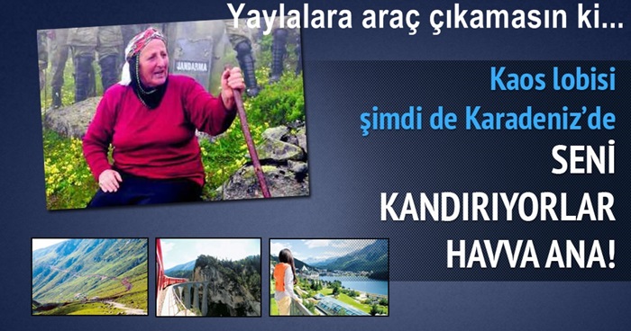 Sana yalan söylüyorlar Havva Ana... Yeşil Yol, doğanı öldürmeyecek. Üstelik senin misafirperverliğini tüm dünyaya tanıtacak. Karadeniz'e yılda 1,5 milyon turist gelecek. Yaylalarında yılda 2 milyar dolar para harcanacak. Bölgede 125 bin kişi iş sahibi olacak. Şimdi sen karar ver Havva Ana...