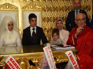 Eşi Esra Dursun, "Çok şaşırdık. Nişanlımın aklına böyle bir şey gelmiş, 'başkanımız buyursun gelsin nikahımızı kıysın' diye. Çok memnun olduk, çok mutlu olduk sağ olsun" diye konuştu.